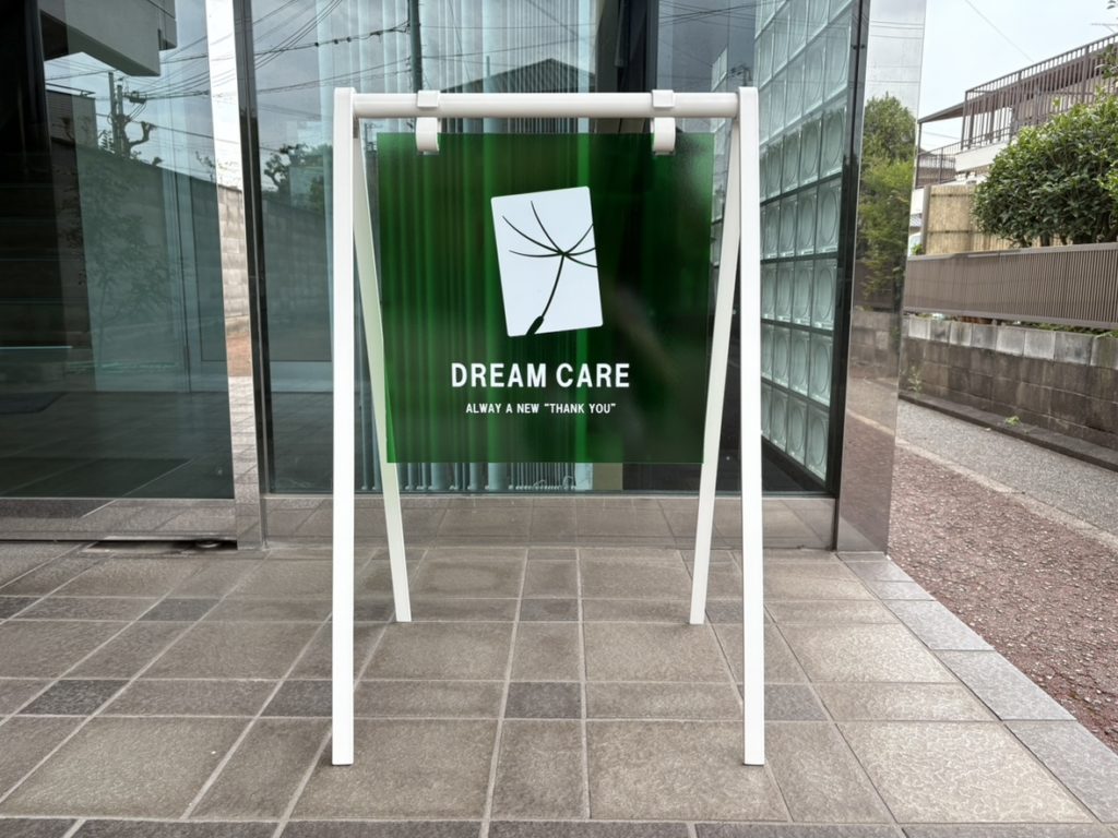 今回の看板は、深みのあるグリーンを背景に白いロゴと文字を配した、シンプルで洗練されたデザイン。